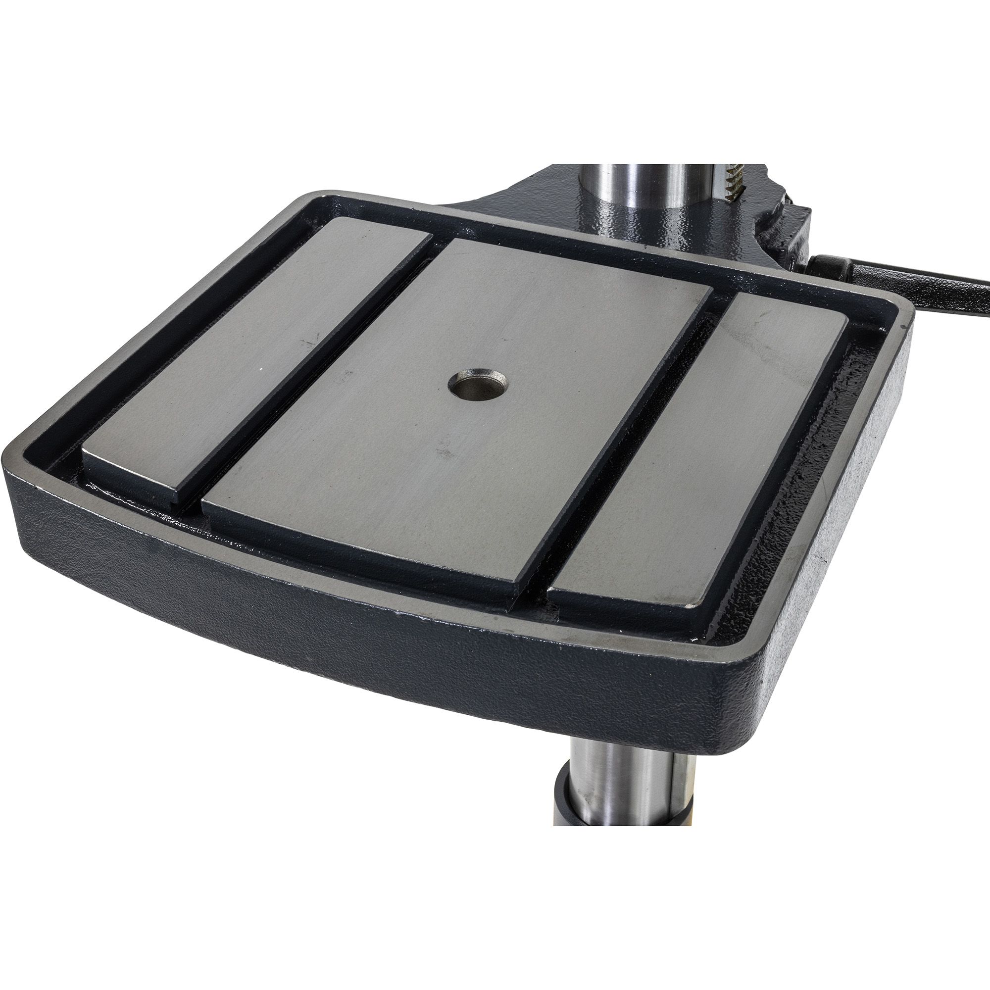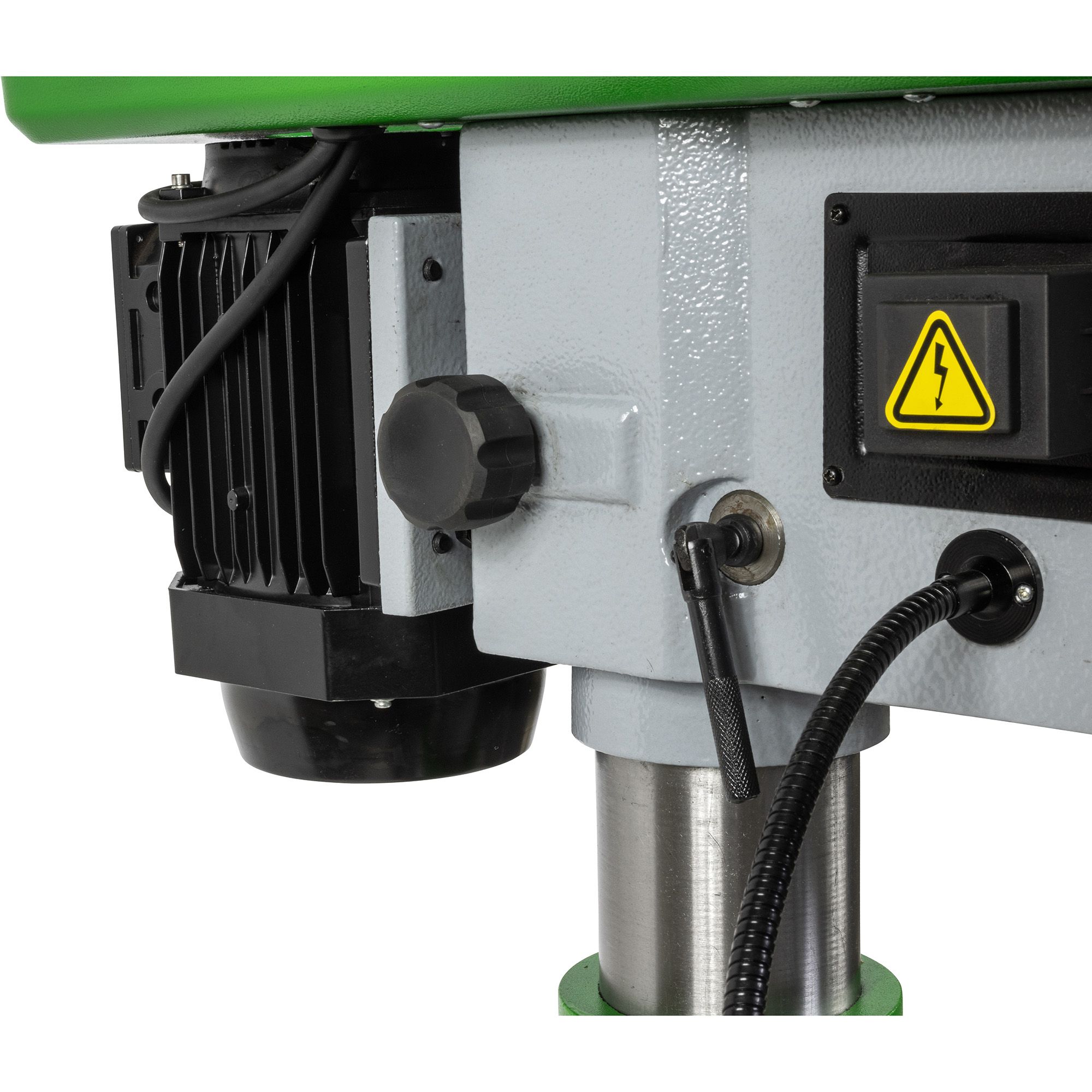 Inclusief snelspanboorkop Inclusief boorstift Inclusief uitdrijfspie Inclusief inbus set Voorzien van zware motorplaat Zware voet met T-sleuven Noodstop aan voorkant Universele beschermkap Kophoogte instelbaar Zware tafel Boordiepte gemakkelijk instelbaar