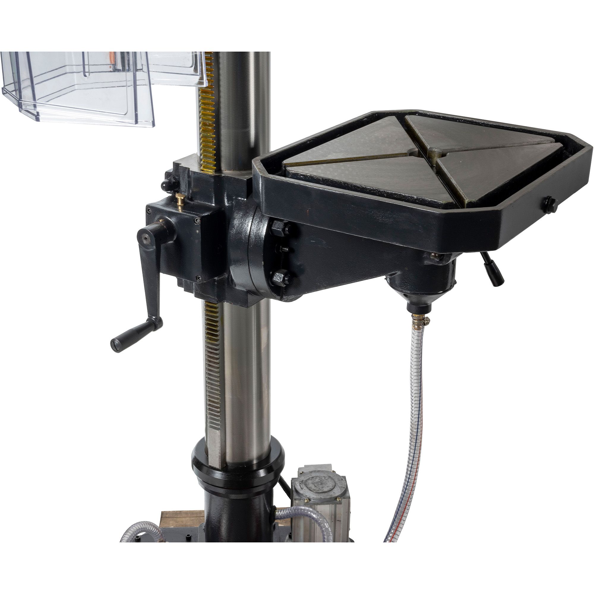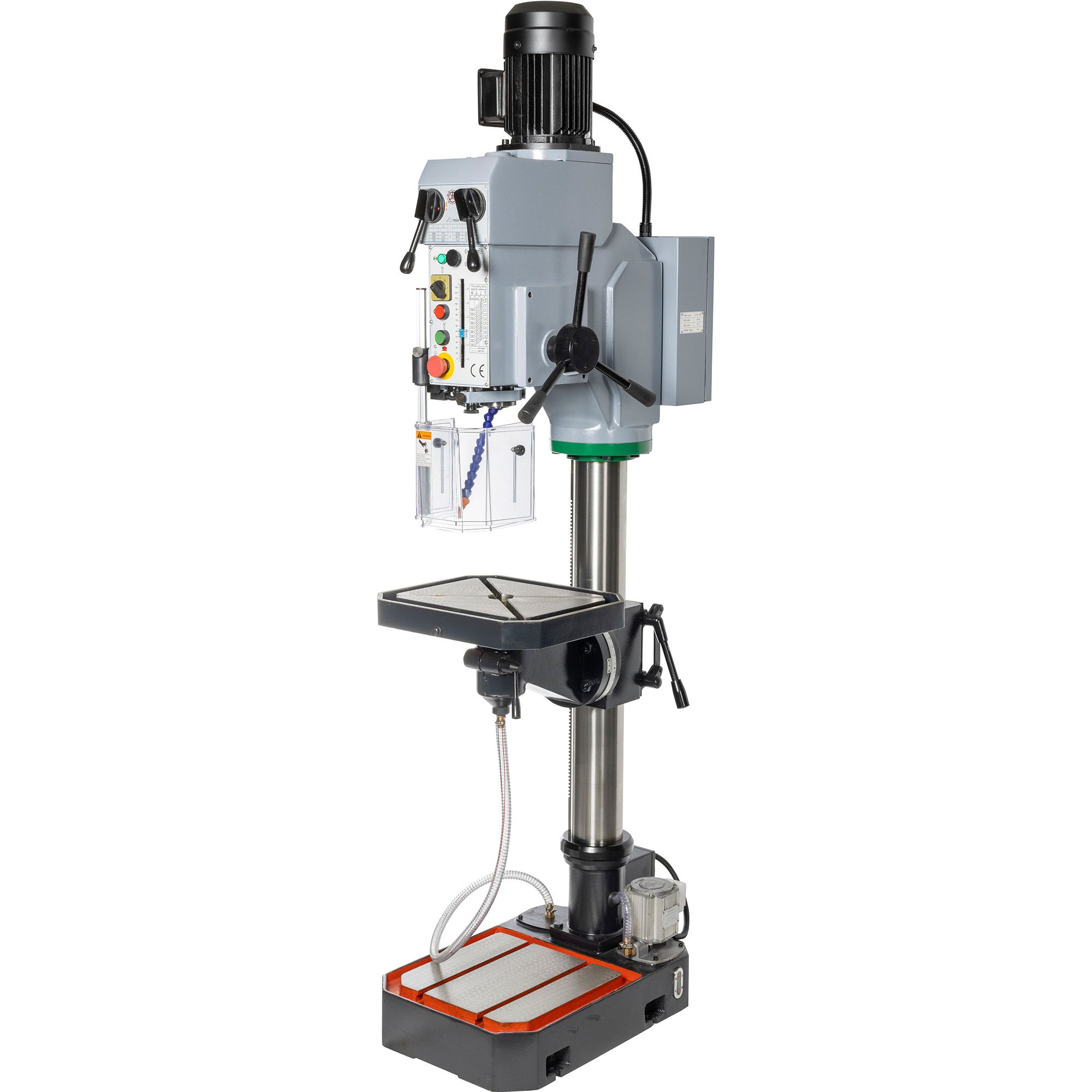Inclusief bij de machine geleverd: Boorkop Boorstift MK3 Adapter MK3-2 Adapter MK3-1 Uitdrijfspie Oliepompje Werklamp Beschermkap koeling 2-toerenmotor spindel links- en rechtsom tafel draai- en kantelbaar fixering tafel excentrisch Max. slag van de werktafel en beugel: 605 mm Rotatiegraad van spindelbox in horizontaal vlak: ±45 ° Voetafmetingen: 335 x 350 mm