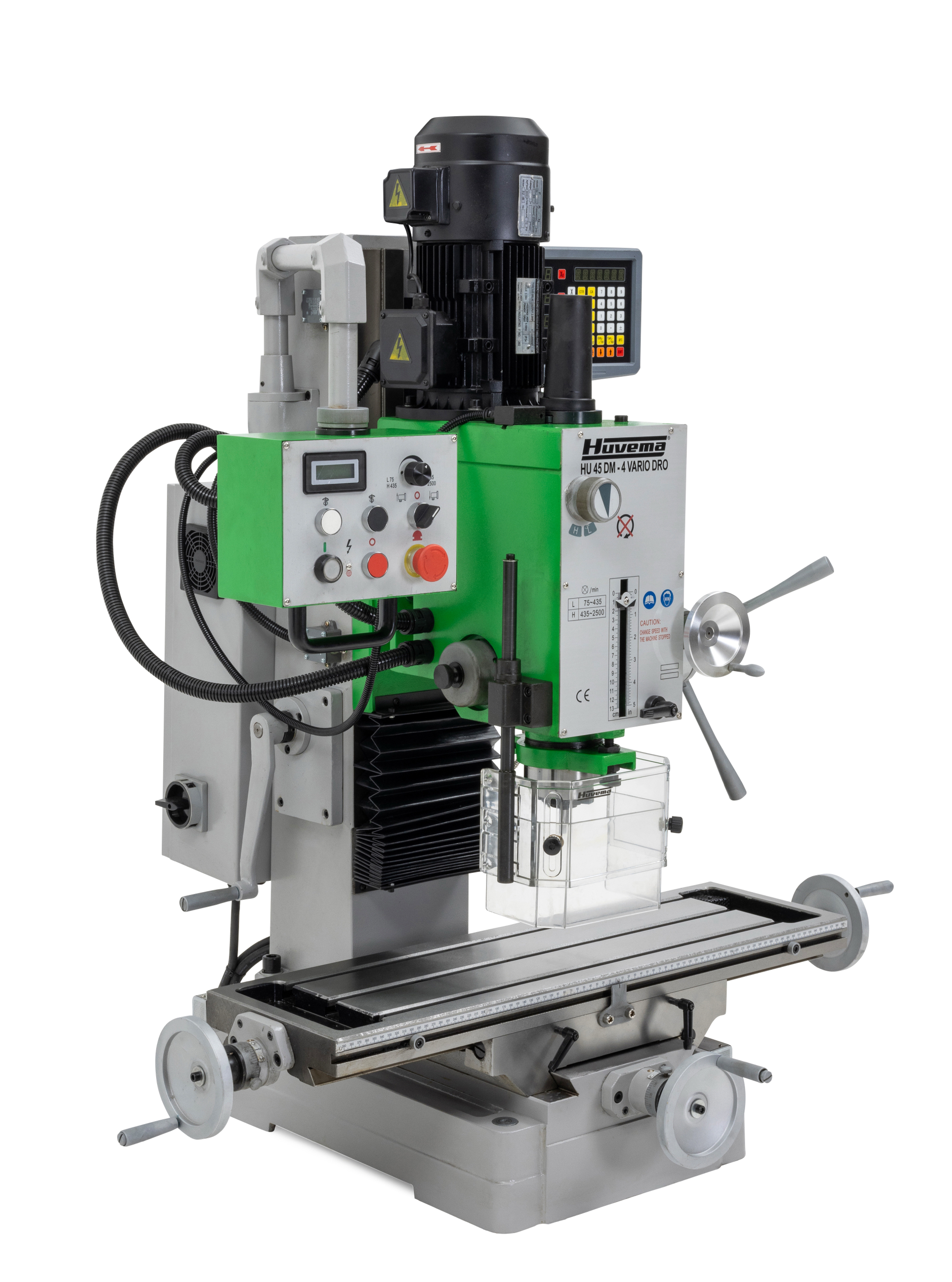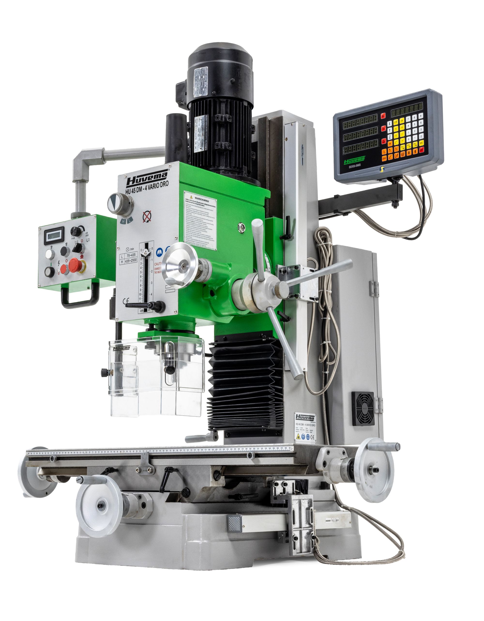 Tandwiel boorfreesmachine met digitale uitlezing en variabel toerental