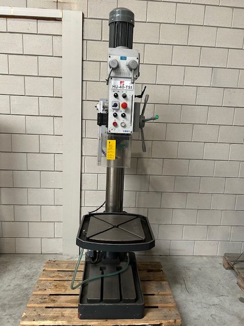 Zware tandwielboormachine van Huvema. Deze tandwiel aangedreven kolomboormachine is ontworpen voor boren, ruimen én tappen. De maximum boorcapaciteit van deze boormachine is 40mm. Deze industriële boormachine is geschikt voor zwaar werk in productie, onderhoud, reparatie, machinefabrieken etc. Uitgerust met: Werklamp Beschermkap koeling Automatische voeding 2-toerenmotor spindel links- en rechtsom tafel draai- en kantelbaar fixering tafel excentrisch met automatische tapinrichting