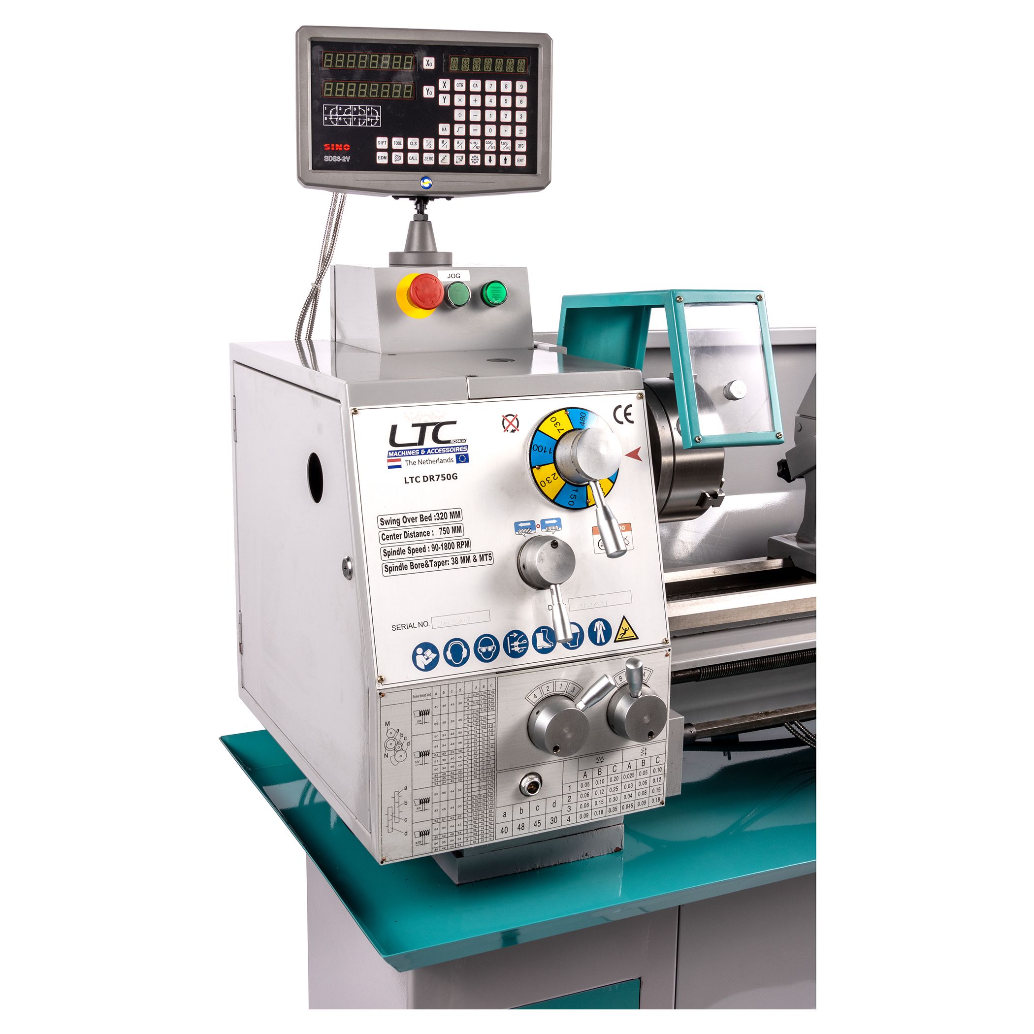 De LTC DR 750 G heeft tandwielgeschakelde aandrijving van de hoofdas. Dit vergroot het over te brengen vermogen in de lage toeren t.o.v. variabel aangedreven hoofdas. Ook een voordeel is het wisselen van toerental. Dit gebeurt aan voorzijde schakelkast d.m.v. schakelhendels. Dus geen riem verleggen.