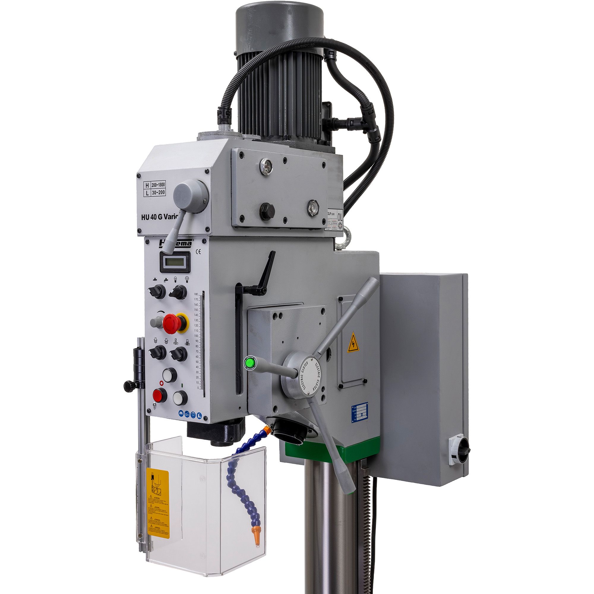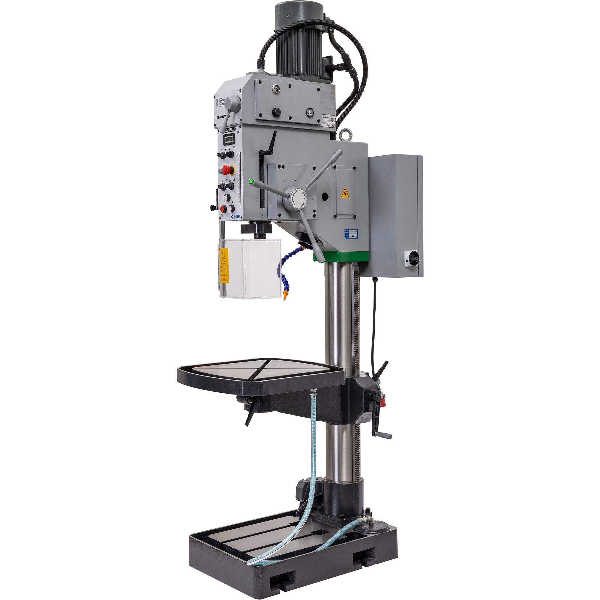 Zware tandwielboormachine van Huvema. Deze tandwiel aangedreven kolomboormachine is ontworpen voor boren, ruimen én tappen. De maximum boorcapaciteit van deze boormachine is 40mm. Deze industriële boormachine is geschikt voor zwaar werk in productie, onderhoud, reparatie, machinefabrieken etc. Het toerental van de HU 40 G Vario is variabel instelbaar, de verstelling kan dus traploos.