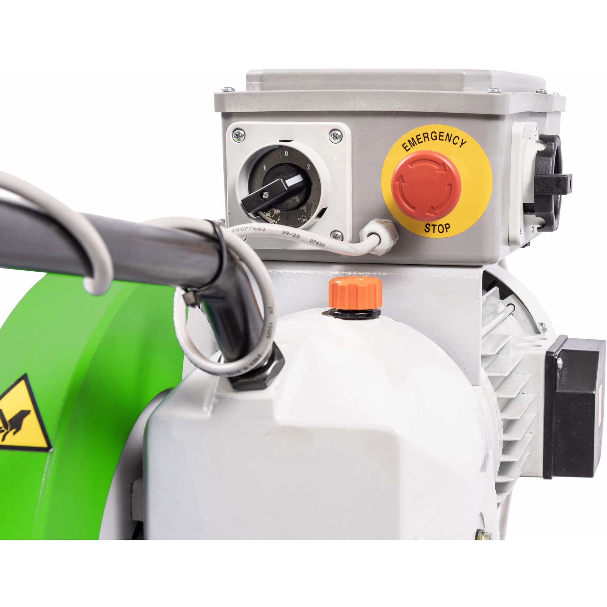 noodstop aan voorzijde Europees fabricaat met snelspanklem aanslag meegeleverd 2-stappen motor.