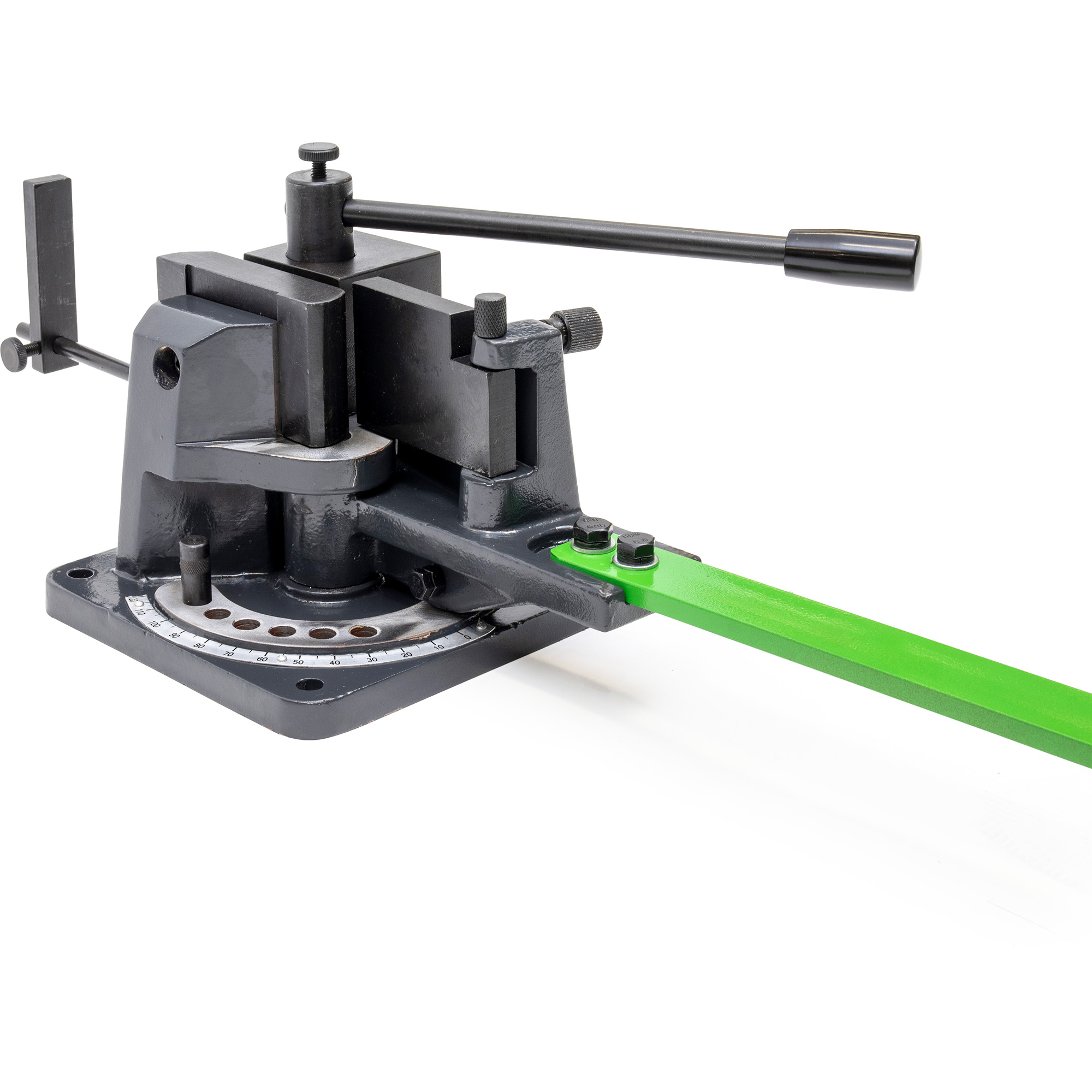 Strippenbuiger voor vierkant, rond en vlakstaal. Geschikt voor reparatiewerkplaatsen en de professionele hobbyist. Buigen tot 120 graden afleesbaar. Aanslag instelbaar. Kan op werkbank gemonteerd worden.